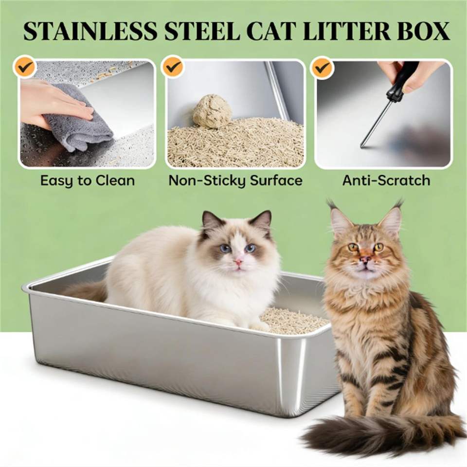 กระบะทรายแมวสแตนเลส ถังขยะทันสมัยสำหรับอุปกรณ์สุขอนามัยของแมว
