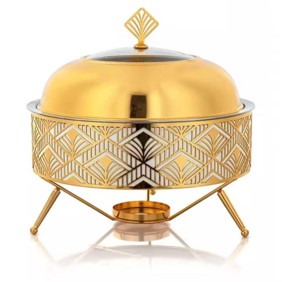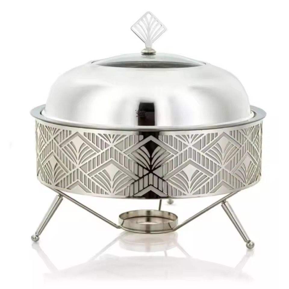 ถาดอุ่นอาหารสแตนเลสพร้อมฝาครอบทรงโดม สำหรับบุฟเฟ่ต์ งานจัดเลี้ยง โรงแรม งานเลี้ยงสังสรรค์