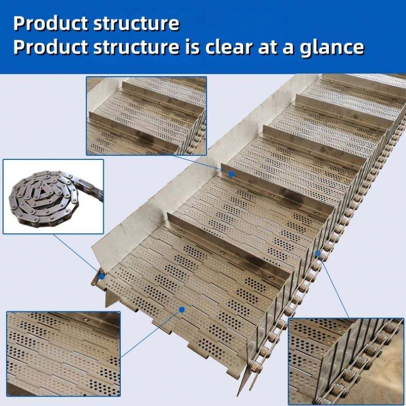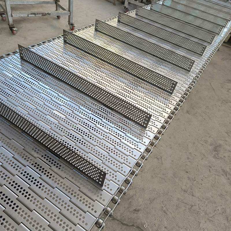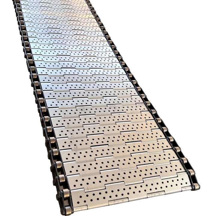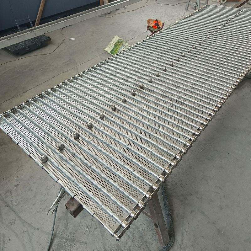 สายพานลำเลียงโซ่สแตนเลสสำหรับอาหาร ชา อบแห้ง แบบเจาะรู แผ่นโซ่หนา 1.5 มม. ทนความร้อนสูง แผ่นโซ่ 304