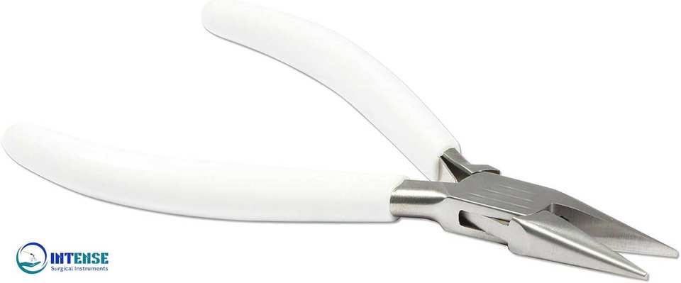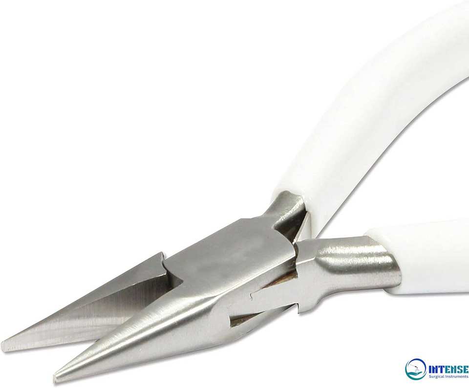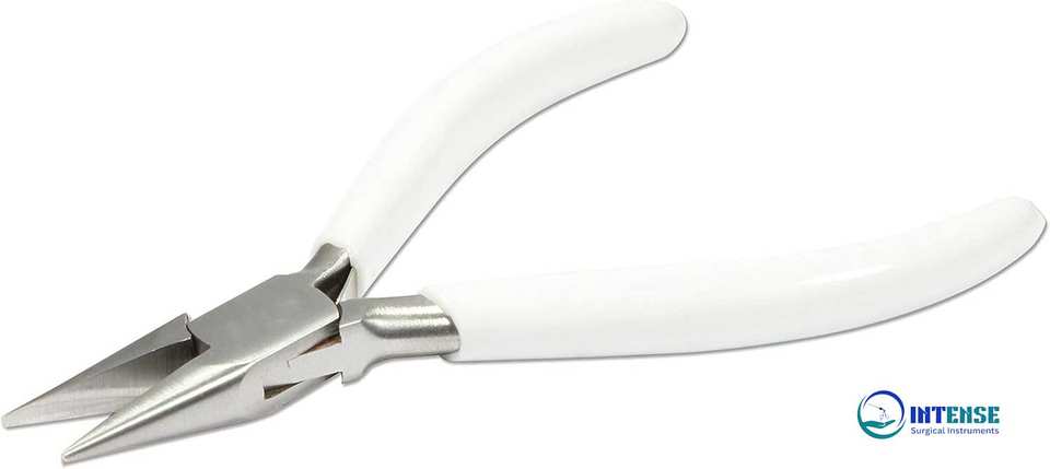 คีมปากแหลมสแตนเลส ด้ามจับพีวีซีสีขาวขัดเงา ด้ามจับสปริงคู่ เครื่องมือทำเครื่องประดับ ซีรีส์ 300