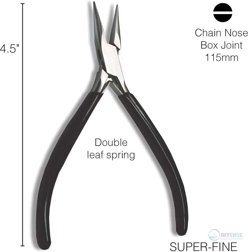 คีมปากแหลมสแตนเลส ปลายแหลมพิเศษ ขนาด 4.5 นิ้ว ด้ามจับ PVC พร้อมสปริงคู่ สำหรับงานเครื่องประดับ สร้อยข้อมือ