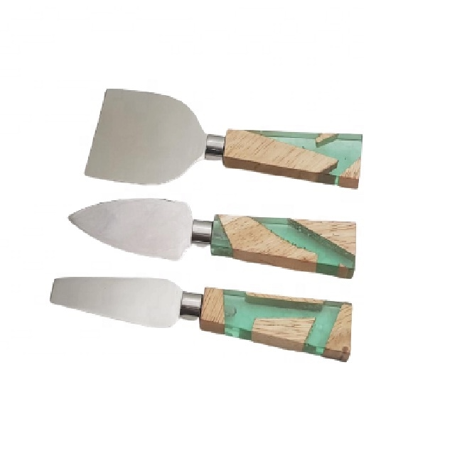 Stainless Steel Cheese Knife Set with Simple Design Umbrella Handle and Crack Wood Resin Joint Resin Cheese Tools