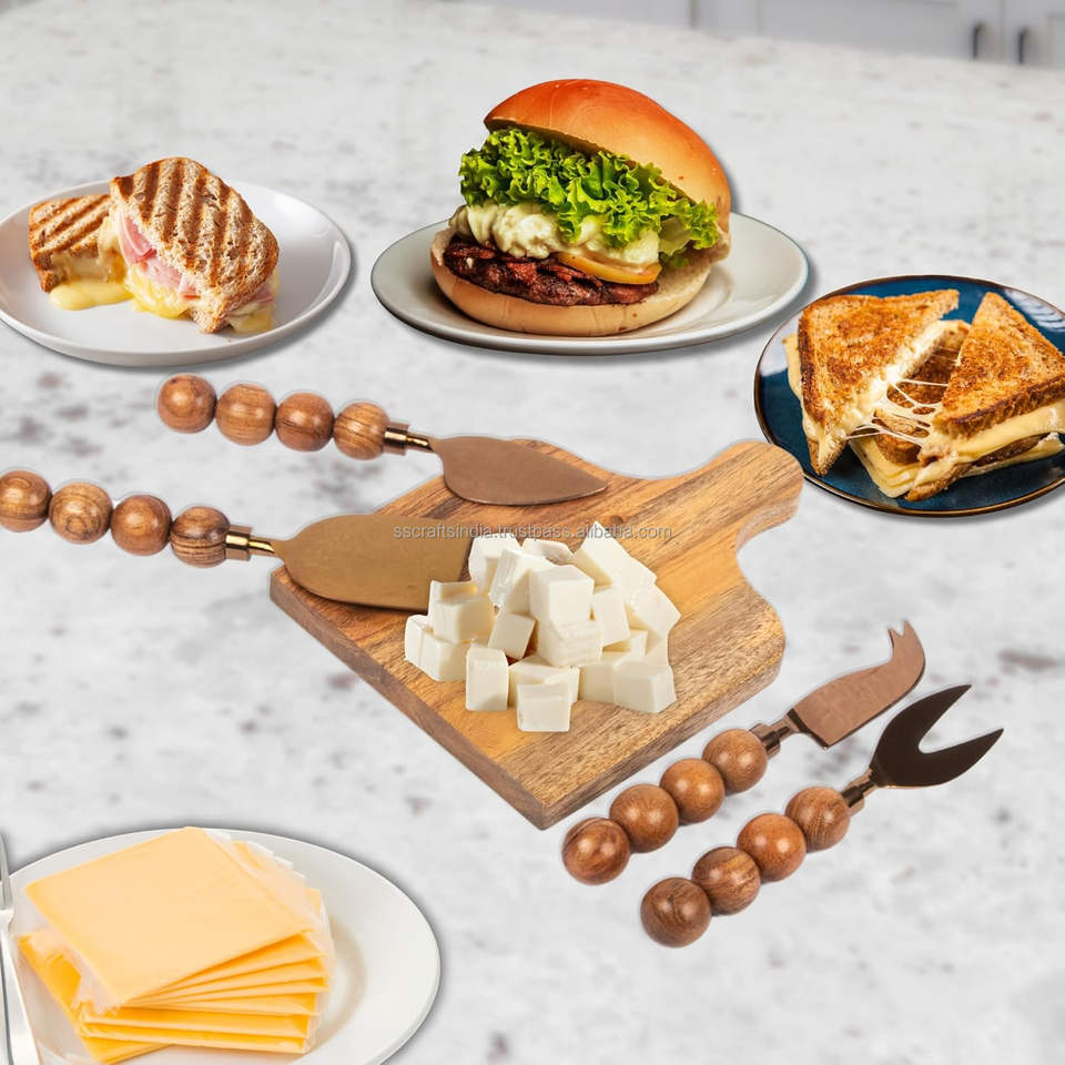 Stainless Steel Cheese Knife and Fork Set with Wooden Handle for Home Cheese Cutting From India