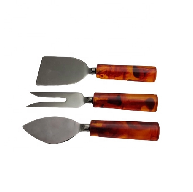 ชุดเครื่องมือทำชีสสแตนเลสด้ามจับทำจากเรซินหินมีดร่มสีเต่าขายส่งอุปกรณ์เสริมสำหรับวางบนโต๊ะชีส