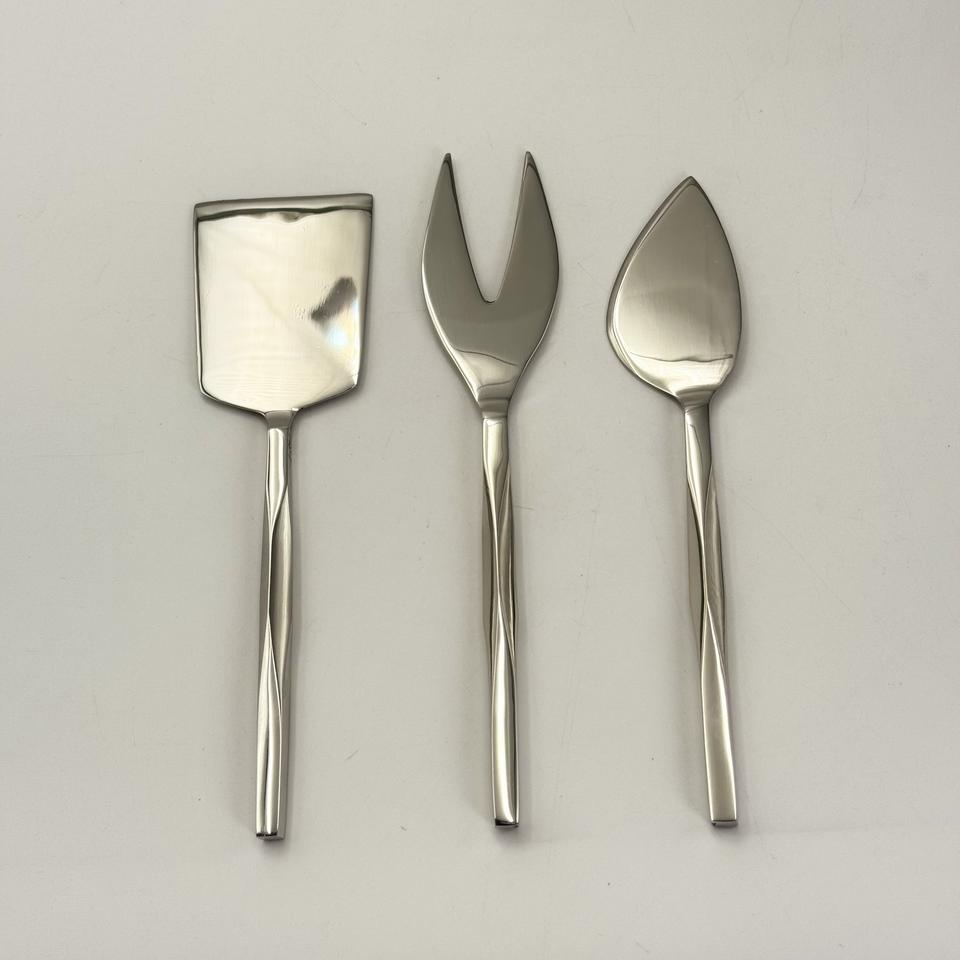 ชุดอุปกรณ์ชีสสแตนเลส 3 ชิ้น มีดชีสทำมือ ที่ตัดชีสพร้อมด้ามจับแบบบิด สำหรับเสิร์ฟชีส