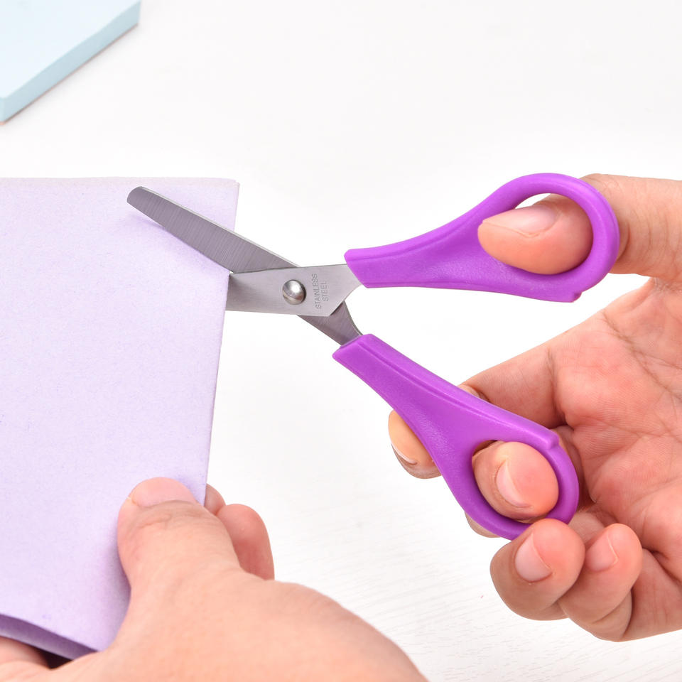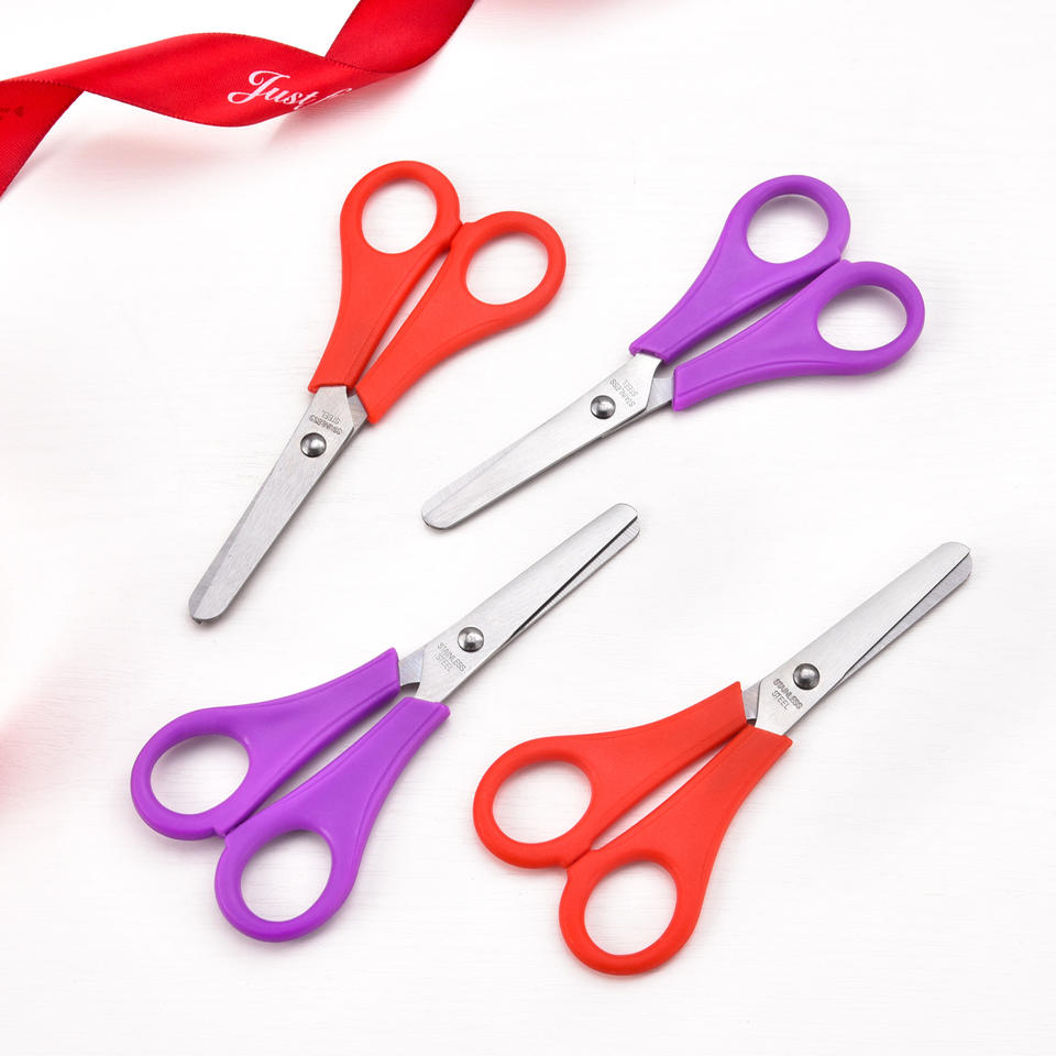 กรรไกรเด็กสแตนเลส 13 ซม. ด้ามจับพลาสติกสีแดง เครื่องมือตัดกระดาษแบบพกพาสำหรับนักเรียน
