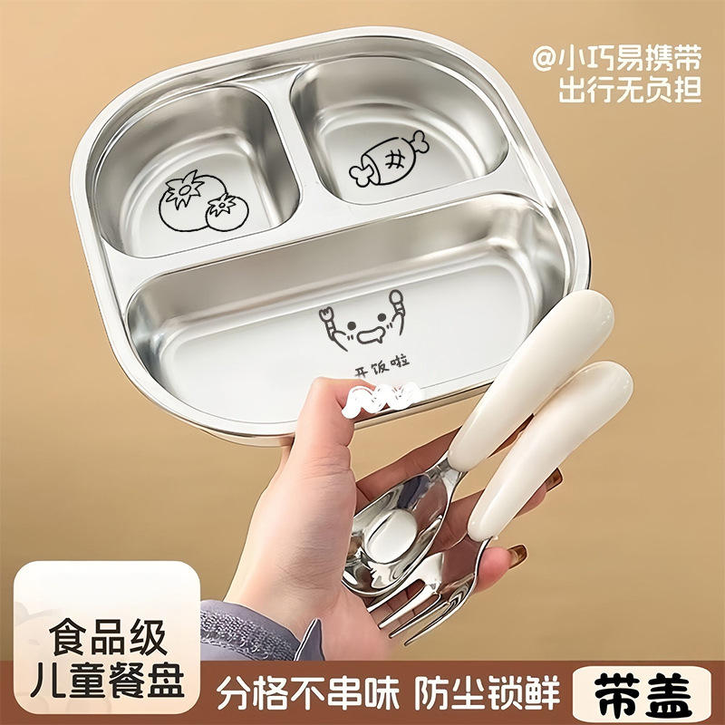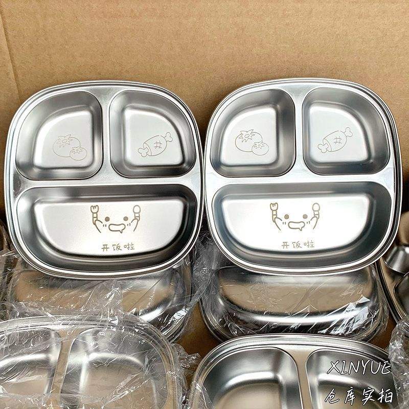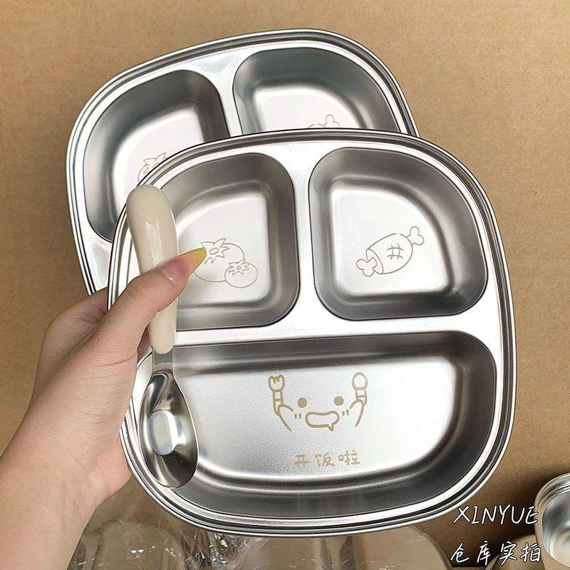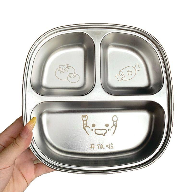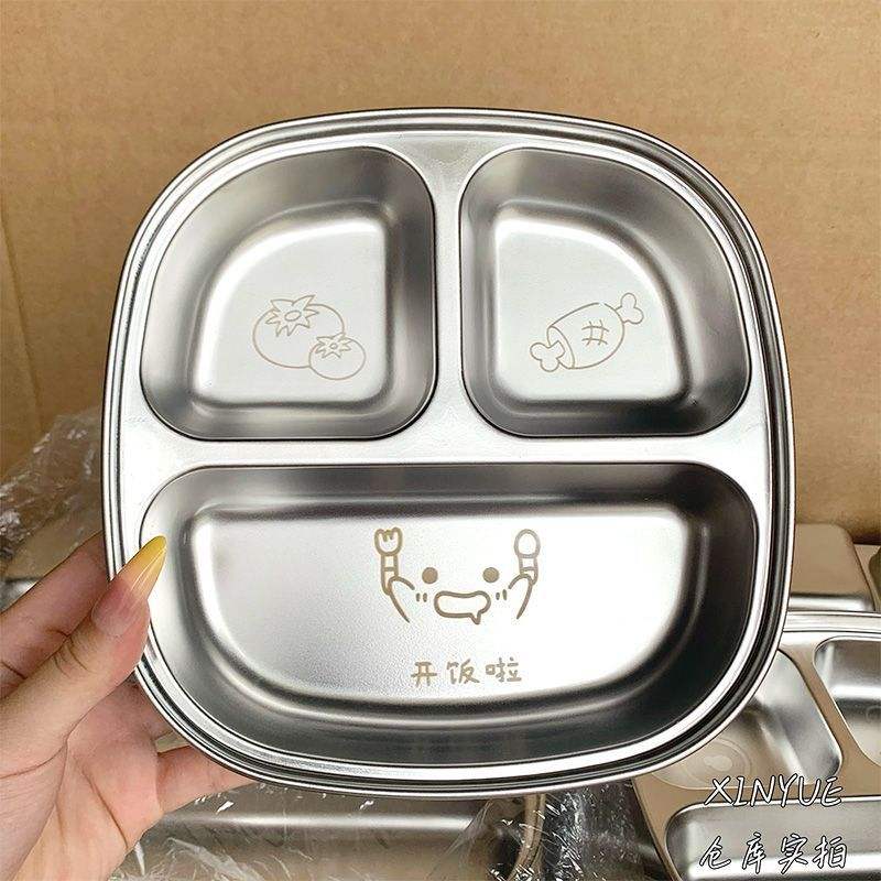 จานอาหารกลางวันเด็กสแตนเลส ดีไซน์การ์ตูน ทรงสี่เหลี่ยมขนาดใหญ่ สำหรับใช้ในบ้านและโรงเรียน
