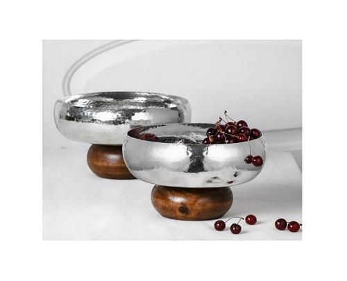 ชามใส่ผลไม้และช็อคโกแลตสแตนเลสพร้อมขาตั้งไม้สำหรับใช้ในบ้านและร้านอาหาร