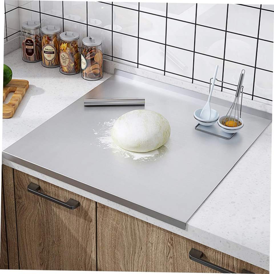 เขียงสแตนเลสพร้อมขอบกันน้ำมัน ยี่ห้อ Yuou เป็นมิตรกับสิ่งแวดล้อมและใช้กับเครื่องล้างจานได้ เหมาะสำหรับวางบนเคาน์เตอร์ครัว