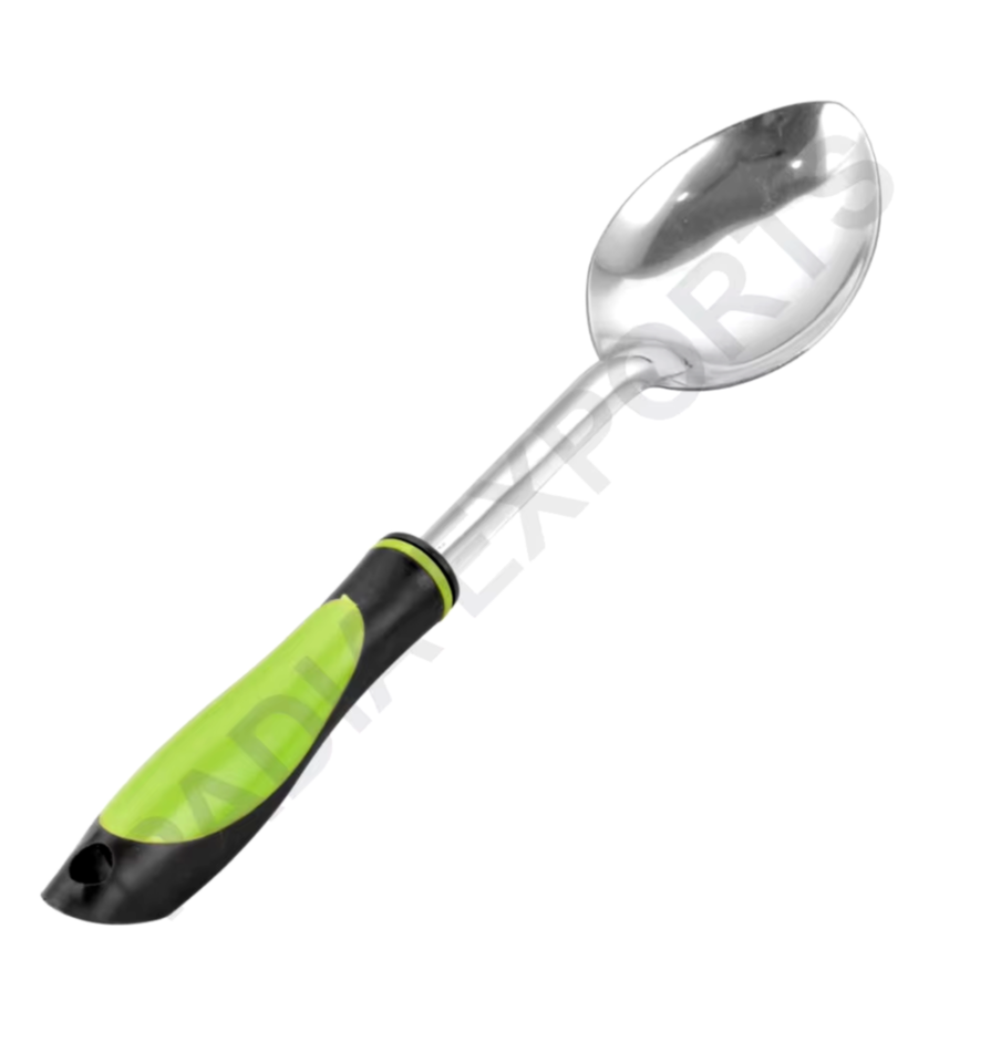 ชุดเครื่องใช้บนโต๊ะอาหารสุดหรูช้อนสแตนเลสแบบคลาสสิกพร้อมด้ามจับพลาสติกแบบจับง่ายช้อนเสิร์ฟข้าวแบบใหญ่ขายส่ง