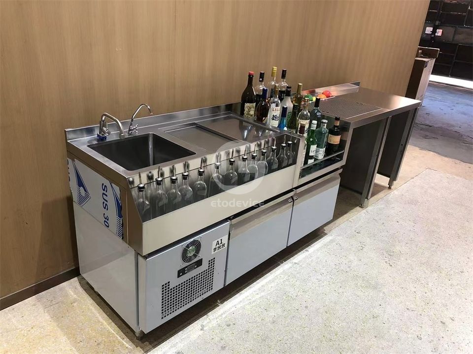 สถานีบาร์ค็อกเทลสแตนเลสพร้อมที่ระบายน้ำ ดีไซน์ใหม่ พร้อมถังเก็บน้ำแข็งและเครื่องล้างแก้ว