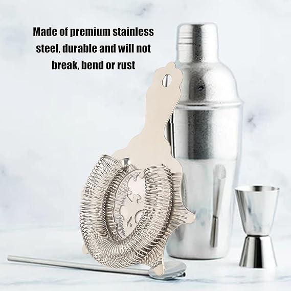 ที่กรองค็อกเทลสแตนเลสพร้อมสปริงแข็งแรง ทนทาน กรองละเอียด รินเรียบ เหมาะสำหรับบาร์ในบ้านและบาร์มืออาชีพ