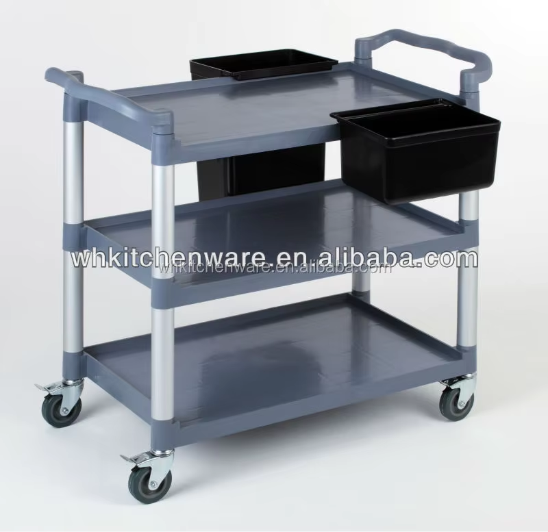 รถเข็นเสิร์ฟอาหารสี่เหลี่ยมแบบท่อสแตนเลสคุณภาพเชิงพาณิชย์ 2-4 ชั้น สำหรับโรงแรมและร้านอาหาร