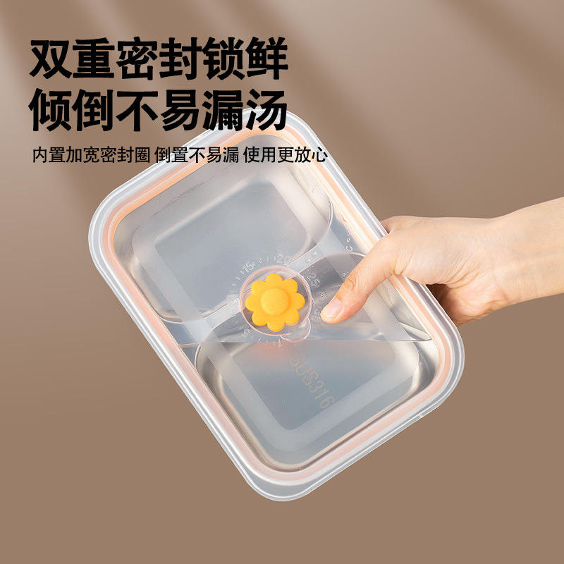 กล่องใส่อาหารสแตนเลสแบบแบ่งช่องพร้อมฝา PP ป้องกันการรั่วซึม กล่องข้าวพกพาสำหรับเตรียมอาหาร