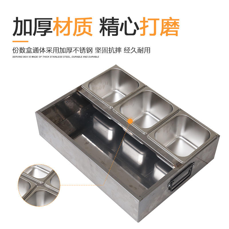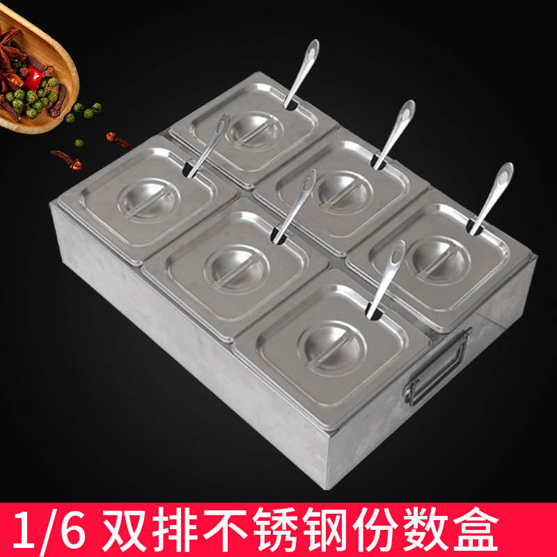 ที่ใส่เครื่องปรุงรสสแตนเลส 6 ช่อง ทรงสี่เหลี่ยม สำหรับเก็บเครื่องเทศในครัว พร้อมถาดแบ่งเสิร์ฟ