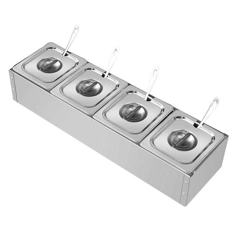 ชั้นวางเครื่องปรุงสแตนเลสทรงสี่เหลี่ยม 6 ช่องสำหรับร้านกาแฟ ร้านชา การจัดเก็บเครื่องปรุงรสแบบเหลวดีไซน์เรียบง่าย