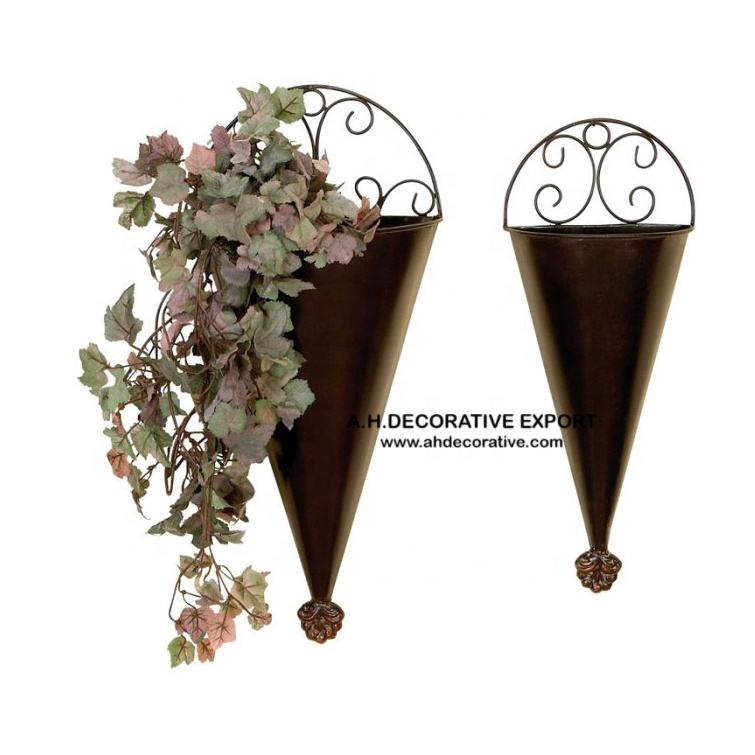 Stainless Steel Cone Shaped Hanging Flower Pot & Planter with Powder Coated Black Finish for Home Use