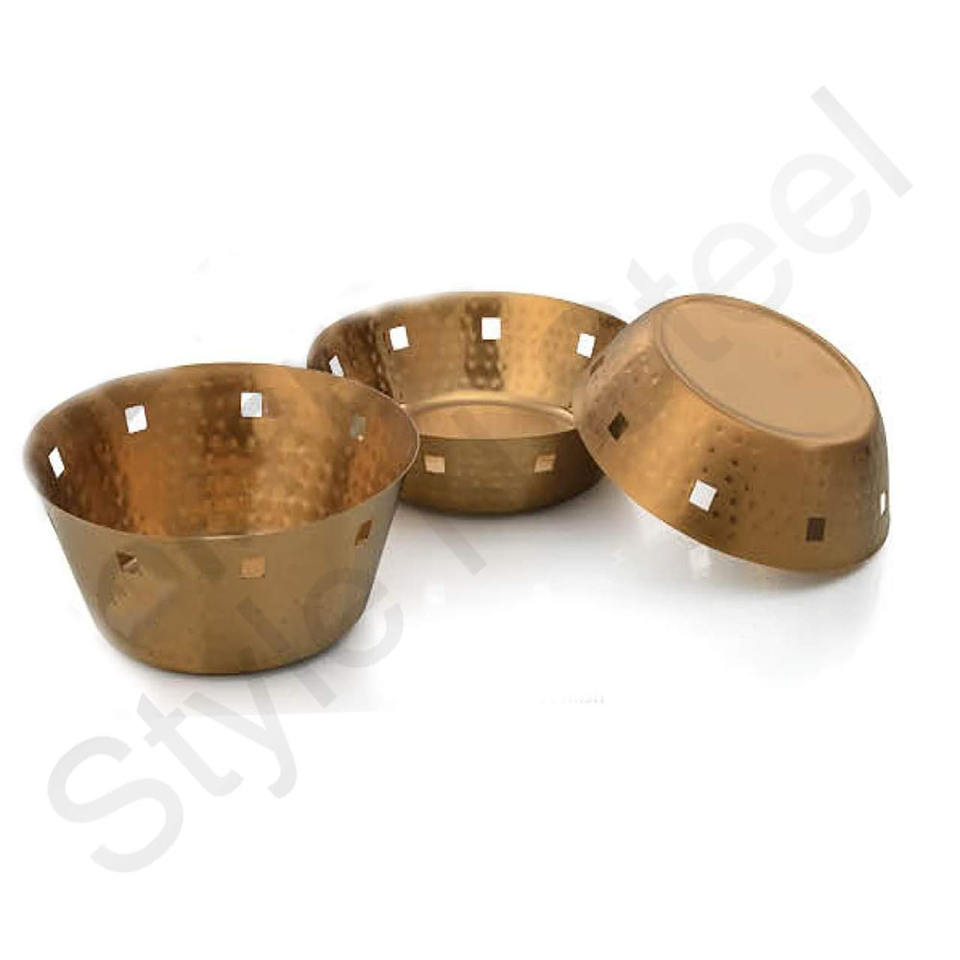 ตะกร้าขนมปังทรงกรวยสแตนเลสทรงกลมสีทอง