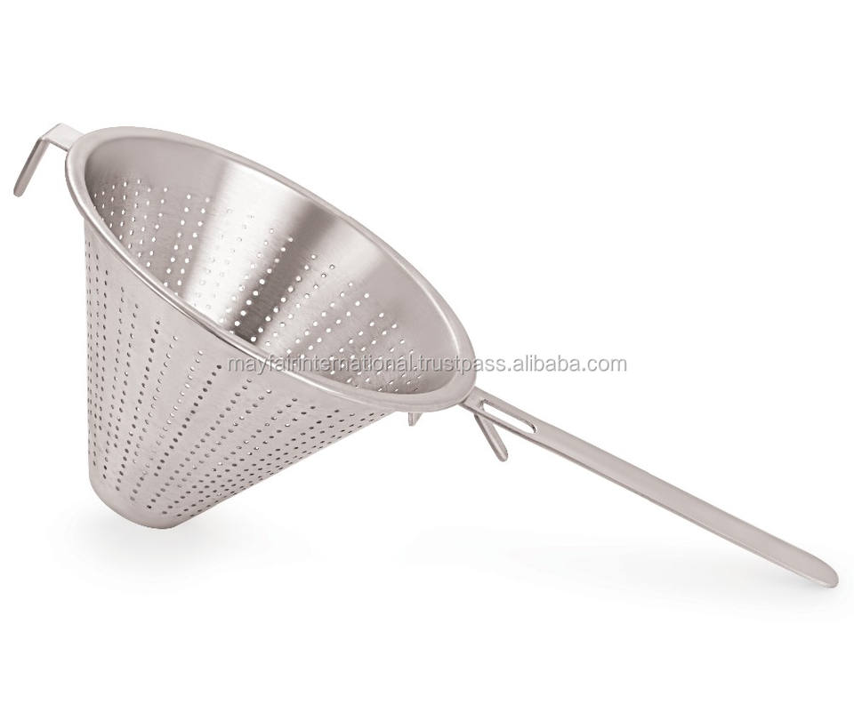 ที่กรองน้ำซุป/น้ำผลไม้ทรงกรวยสแตนเลสพร้อมหูจับแบบลวด
