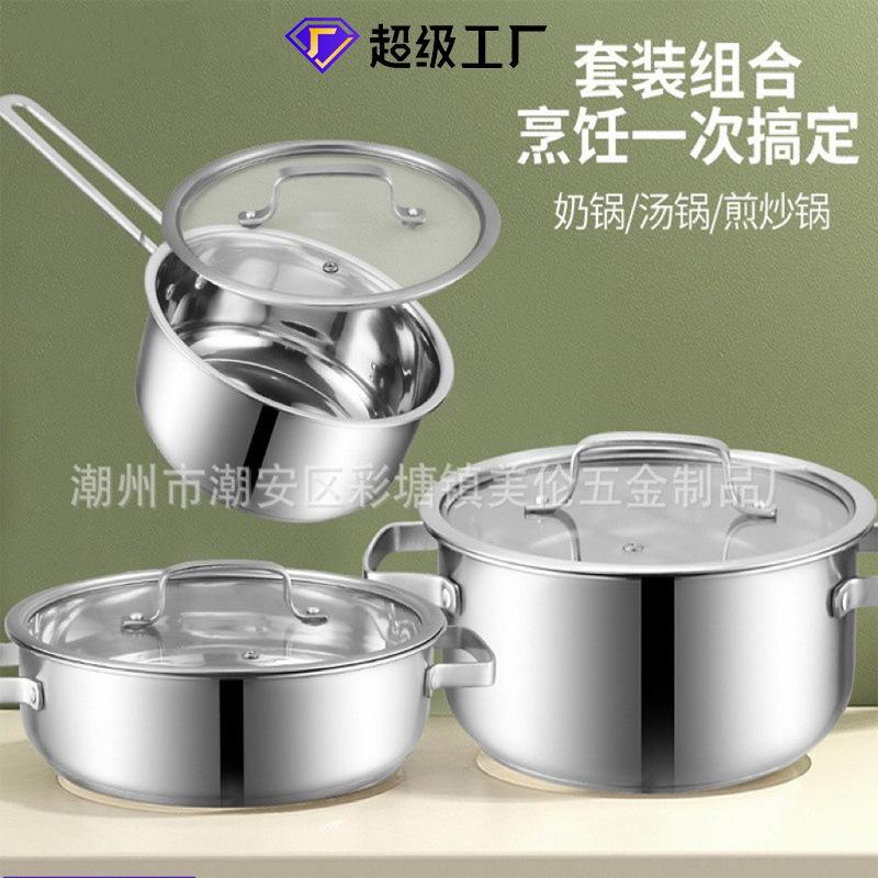 ชุดเครื่องครัวสแตนเลส 3 ชิ้น ใช้กับเตาแม่เหล็กไฟฟ้าได้ ชุดของขวัญ ล้างด้วยมือเท่านั้น ป้องกันสนิม
