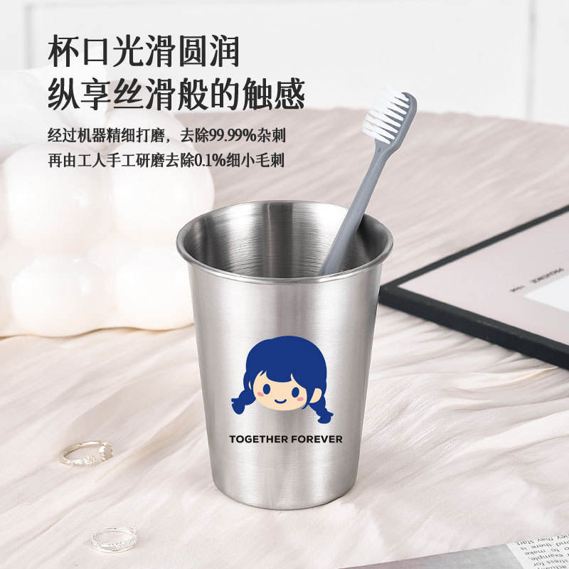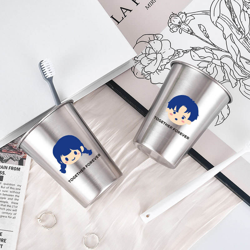 ถ้วยแปรงสีฟันคู่สแตนเลส 450 มล. ดีไซน์ร่วมกันอยู่ด้วยกันตลอดไปสำหรับเด็กชายและเด็กหญิง
