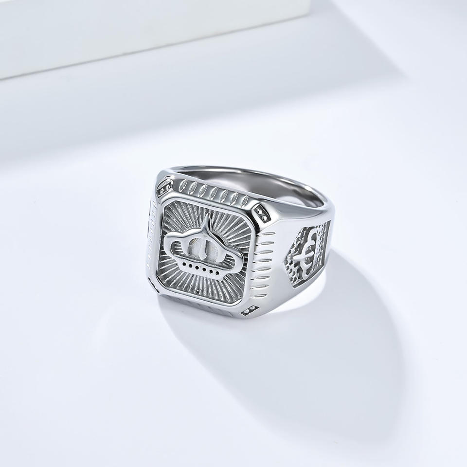 แหวนมงกุฎสแตนเลสสำหรับผู้ชายเครื่องประดับนิ้วชี้ของขวัญรูปทรงเรขาคณิต K R997