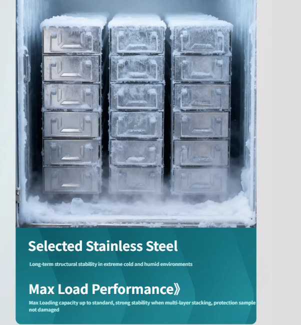 ชั้นวางเก็บของแบบแช่แข็งสแตนเลสสตีล, แบบเข้าถึงด้านข้าง, ชั้นวางเก็บตัวอย่างแบบแช่แข็งทั้งชุด, กล่องแช่แข็งเซลล์
