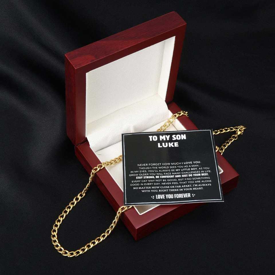 สร้อยคอโซ่ทองแดงคิวบาแบบคลาสสิกพร้อมกล่องของขวัญและบัตรข้อความถึงผู้ชายของฉัน