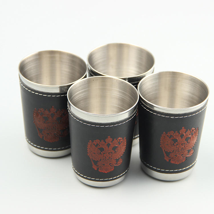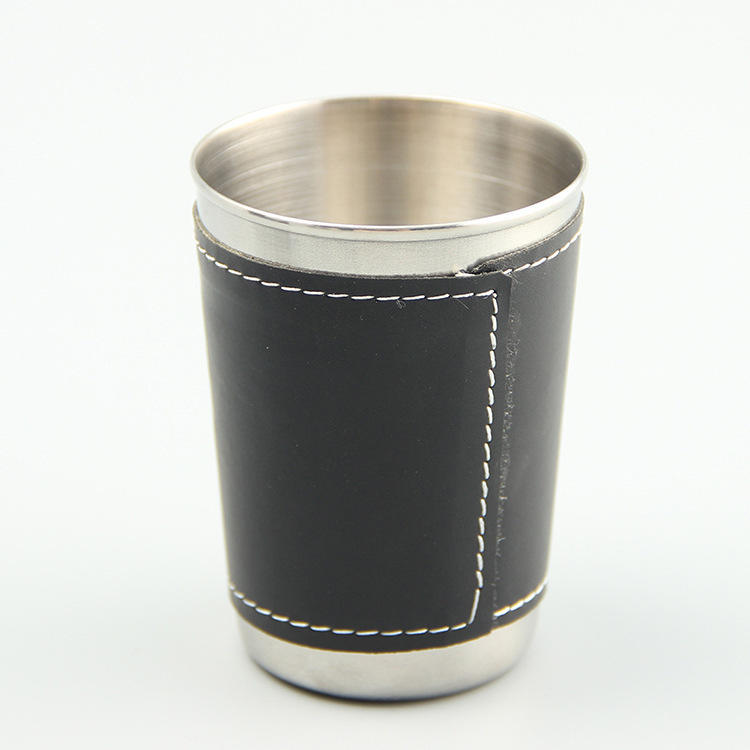 ชุดแก้วสแตนเลส 101-200 มล. เคลือบหนังสีดำ แบบสองชั้น พกพาสะดวก สำหรับไวน์และเบียร์