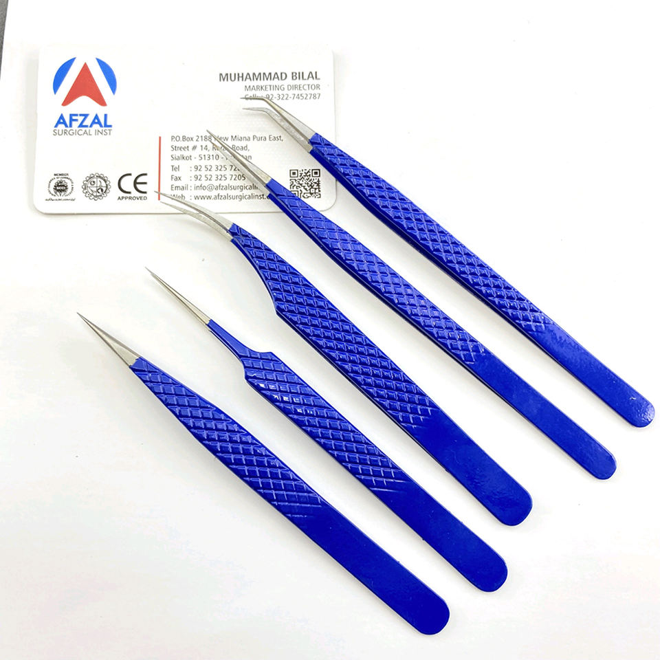 แหนบขนตาสแตนเลสแบบโค้งพร้อมด้ามจับเพชรสีฟ้า2025ยาว14ซม.