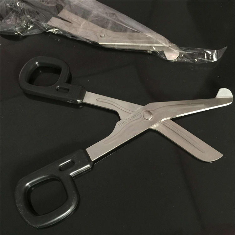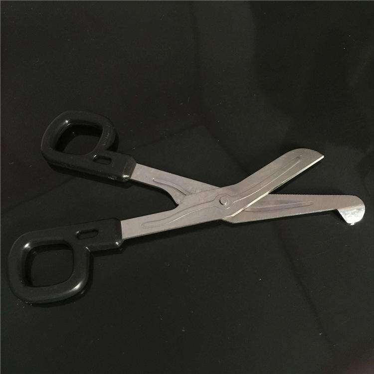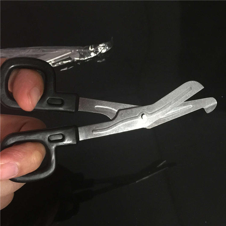 กรรไกรโค้งสแตนเลส 15 ซม. ใบมีดหยักบางส่วน สำหรับใช้กับเทปกายภาพบำบัดและผ้าพันแผลในโรงพยาบาลและคลินิก