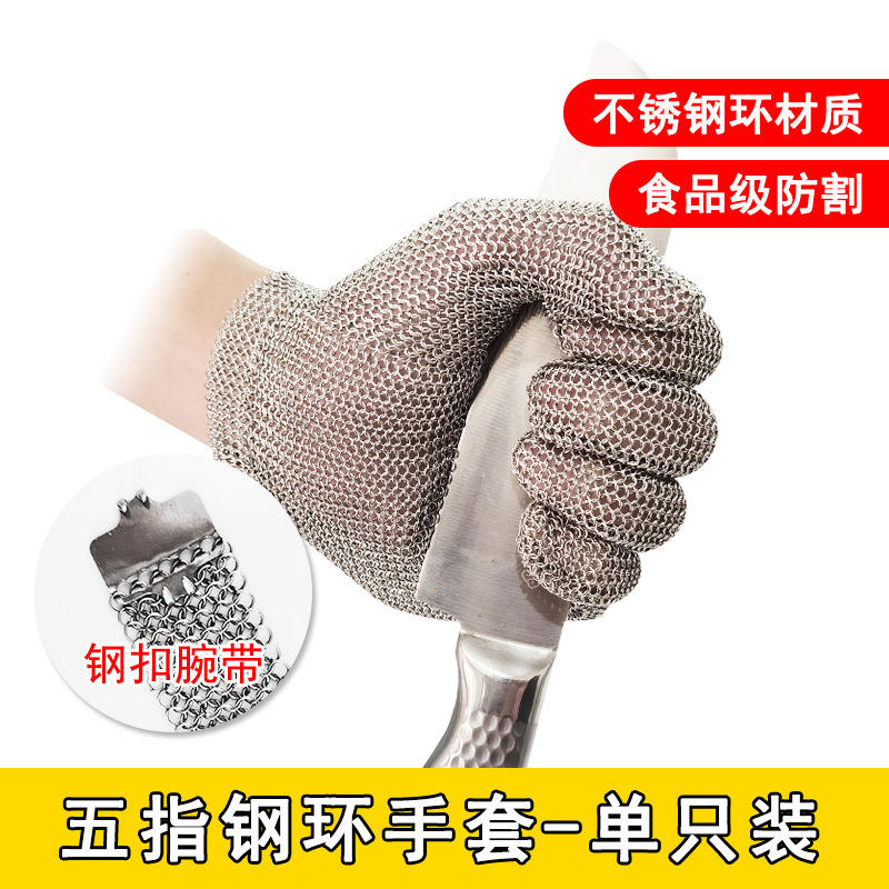 ถุงมือกันบาดสแตนเลส ระดับ 5 สำหรับแปรรูปอาหาร ป้องกันการเจาะทะลุ แบบห้านิ้ว ไม่เคลือบผิว ป้องกันการบาด