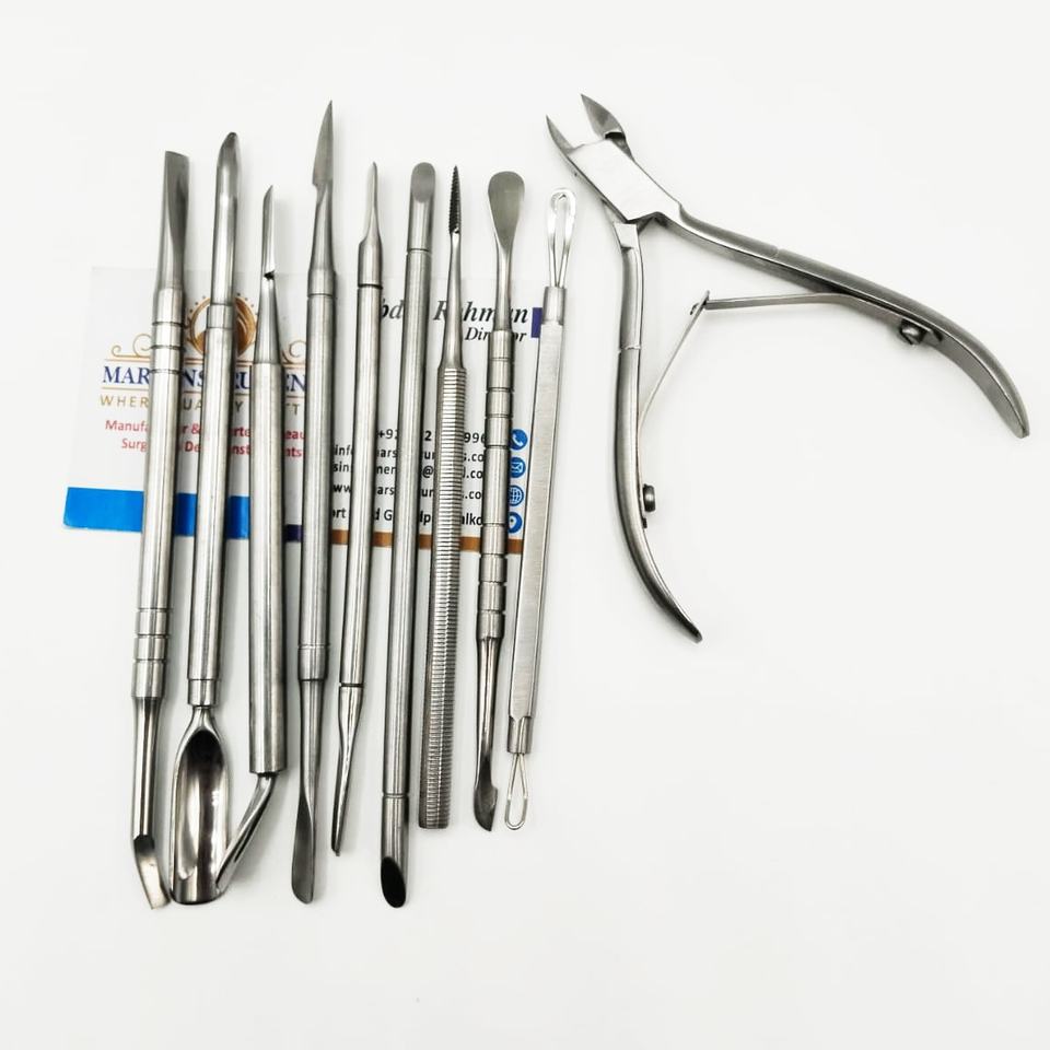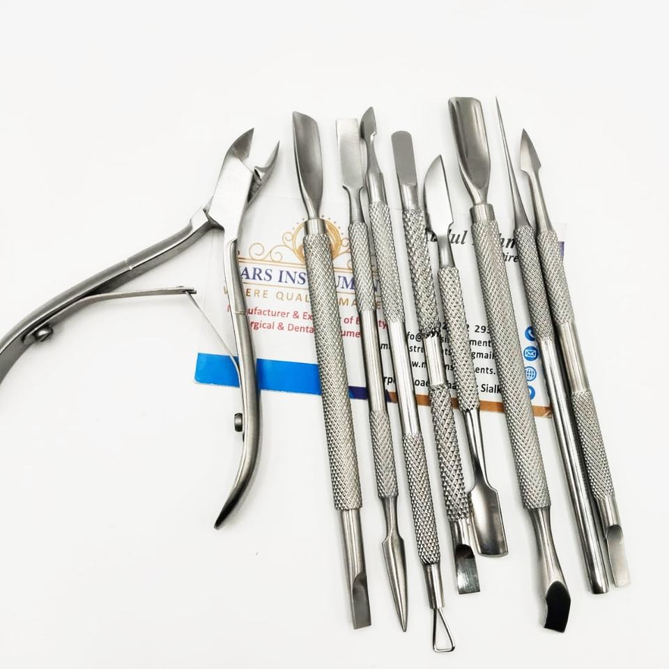 ที่ตัดหนังกำพร้าสแตนเลสแบบสองด้าน พร้อมที่ดันหนังกำพร้า ที่ตัดเล็บ ใช้ซ้ำได้ อุปกรณ์ทำเล็บมือและเล็บเท้า สำหรับตกแต่งเล็บ