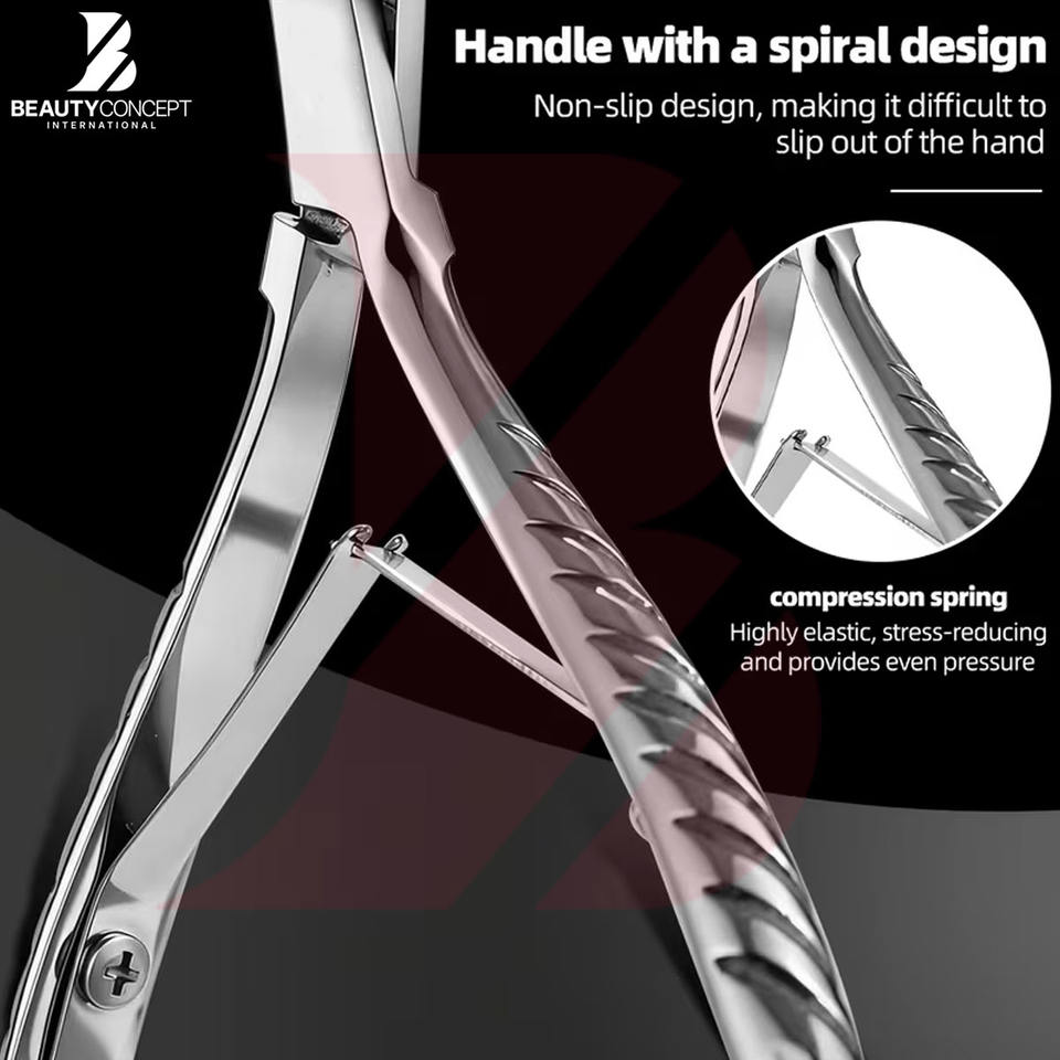 คีมตัดหนังที่ทำจากสแตนเลสพร้อมที่จับพื้นผิวคีมตัดเล็บที่มีความแม่นยำสำหรับเครื่องมือความงามทำเล็บเท้า