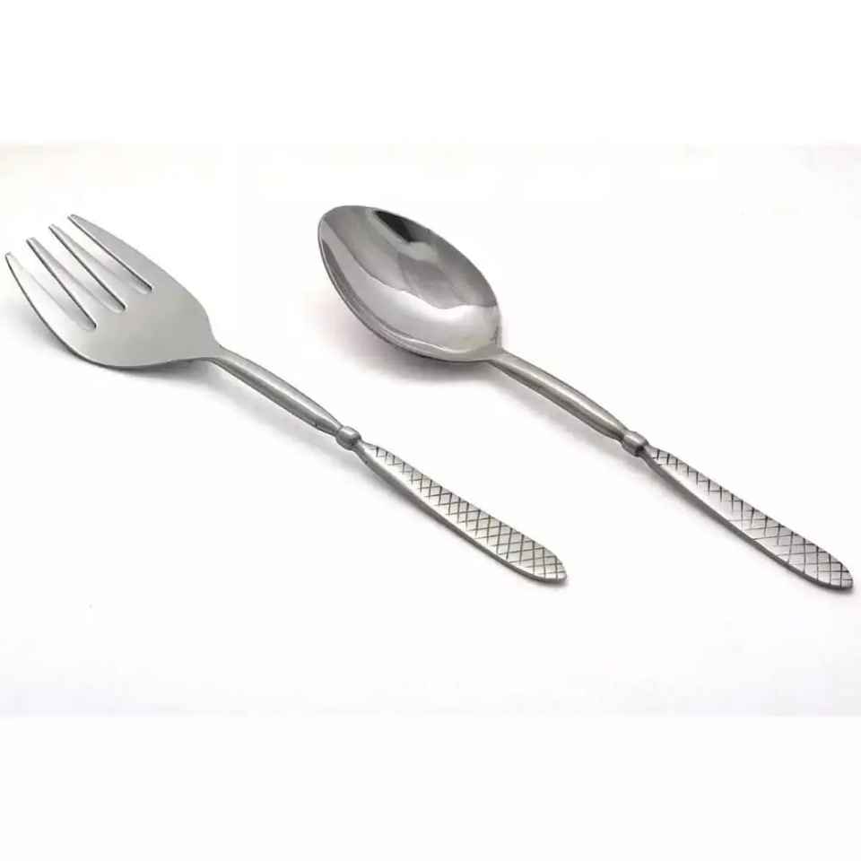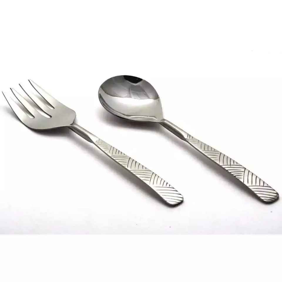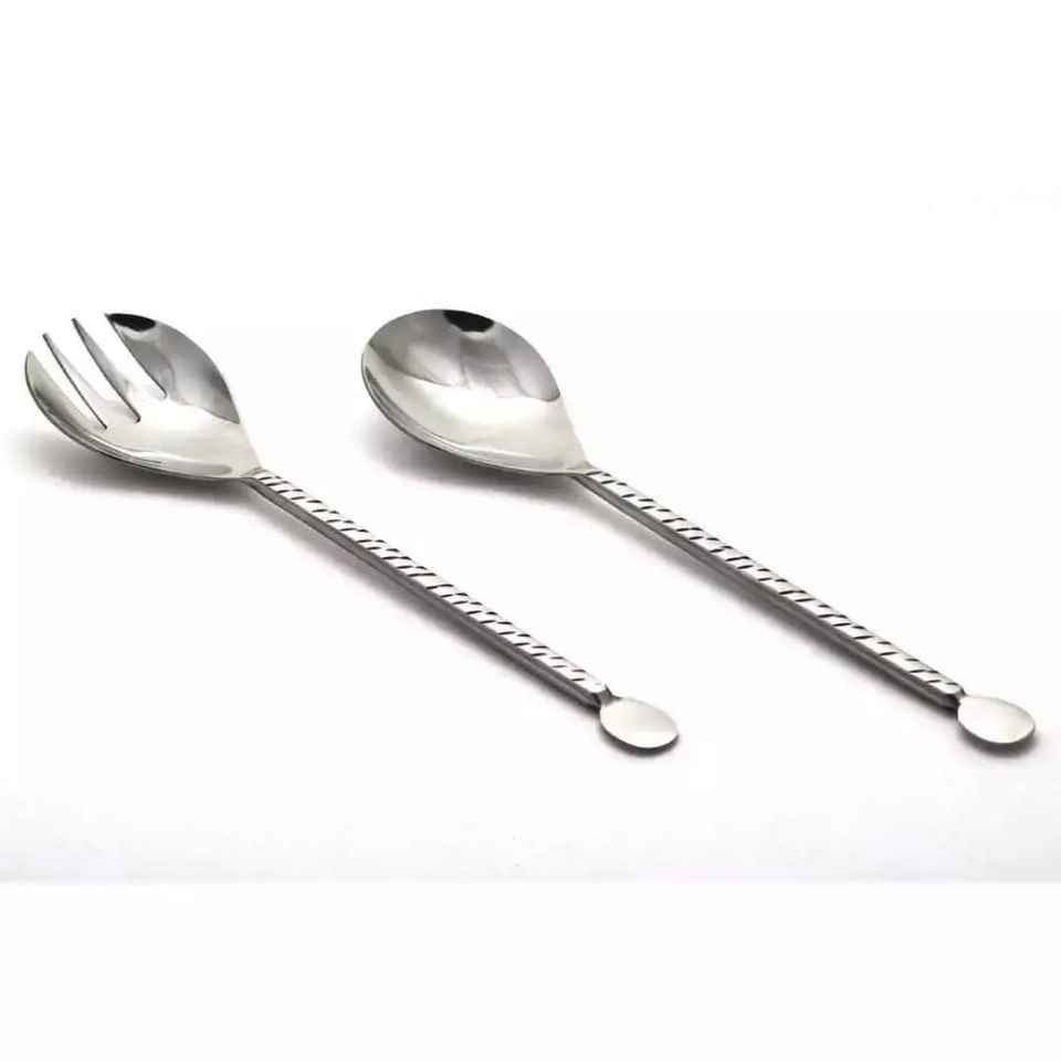 ชุดช้อนส้อมสแตนเลส ช้อนเสิร์ฟสลัด ช้อนเสิร์ฟทันสมัย ทำด้วยมือ เป็นมิตรกับสิ่งแวดล้อม ปรับแต่งได้ ใช้กับเครื่องล้างจานได้ อุปกรณ์ครัว