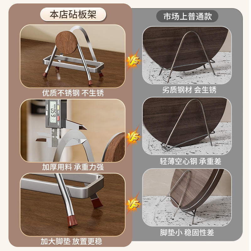 ที่วางเขียงสแตนเลสพร้อมฐานไม้กันลื่นชั้นวางของในครัวรูปสี่เหลี่ยมผืนผ้าชั้นวางเมซา