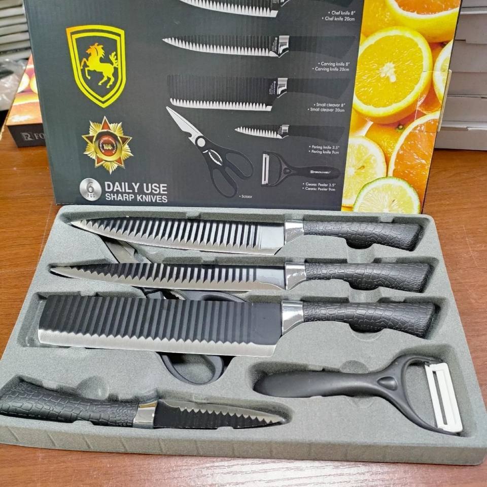 ชุดเครื่องมือตัดสแตนเลสสีดำ238A คลื่นชุดหกชิ้นมีดตัดในครัวกล่องของขวัญธุรกิจ