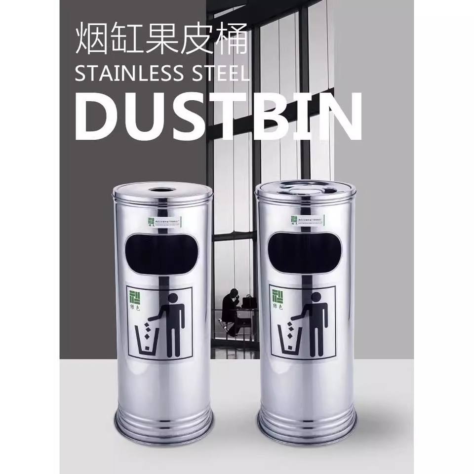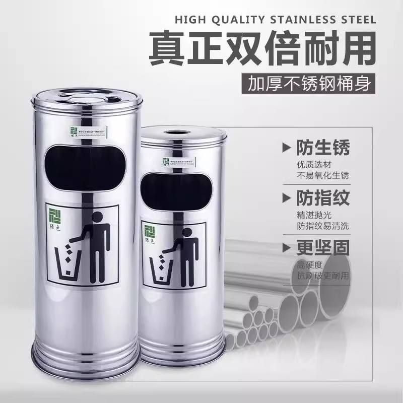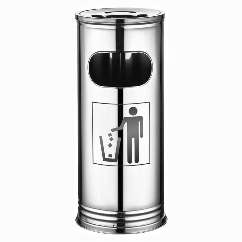 ถังขยะทรงกระบอกสแตนเลส ใช้ได้ทั้งภายนอกและภายใน สำหรับโรงแรม โรงเรียน ถังขยะเชิงพาณิชย์