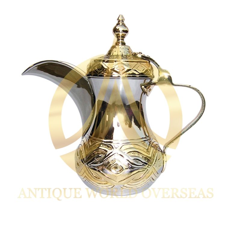 หม้อกาแฟอัลเลาะห์ทำมืออาหรับสแตนเลสพร้อมดีไซน์ที่น่าสนใจสีเงินทองจากผู้ผลิตอินเดีย