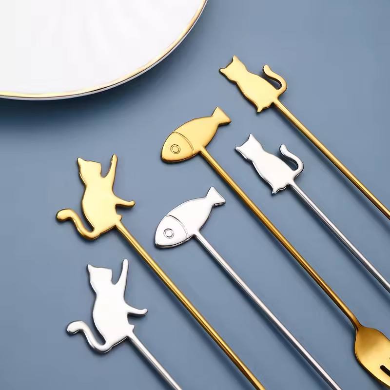 สแตนเลสขนมหวานกาแฟช้อนกวนช้อนชาขนาดเล็กและส้อมชาพร้อมกล่องของขวัญ
