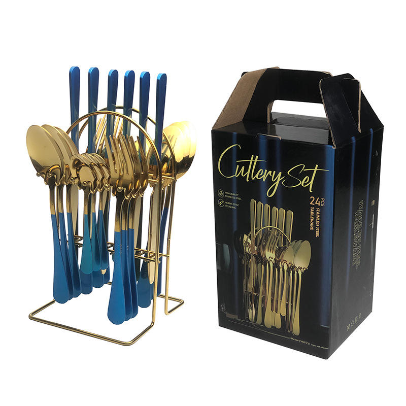 ชุดอาหารสแตนเลส 24 ชิ้น รูปทรงสี่เหลี่ยมผืนผ้า ใช้กับเครื่องล้างจานได้ เหมาะสำหรับงานเลี้ยงและมื้ออาหารครอบครัว