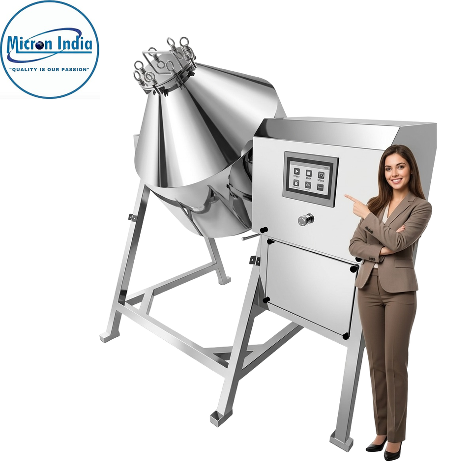 เครื่องปั่นแบบกรวยคู่สแตนเลสอุตสาหกรรม ไมครอน อินเดีย | เครื่องผสมผงอาหารเคมี ผสมอย่างสม่ำเสมอ ผสมได้ละเอียด