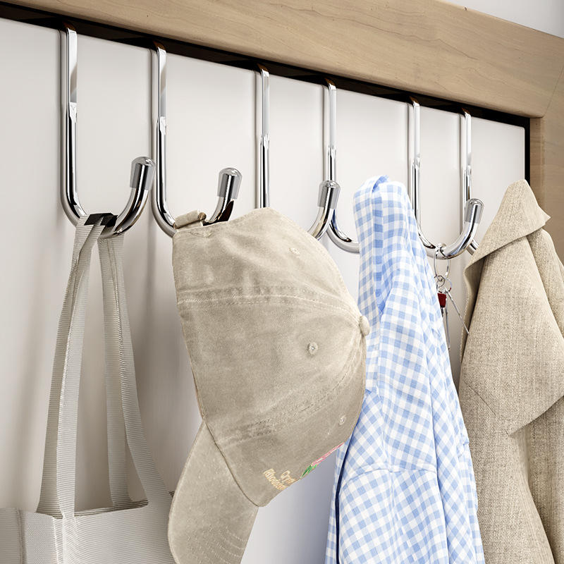 ตะขอแขวนผนังรูปตัว S สแตนเลสแบบคู่ ทนทานต่อการเกิดสนิม สีเงิน สีดำ ตะขอรูปสี่เหลี่ยมผืนผ้าสำหรับประตู ห้องครัว ห้องน้ำ