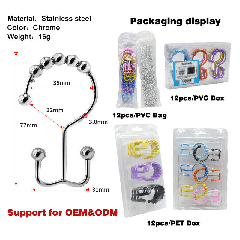 ตะขอแขวนผ้าม่านห้องน้ำสแตนเลสสองด้าน กันน้ำ กันสนิม สำหรับใช้ในบ้าน