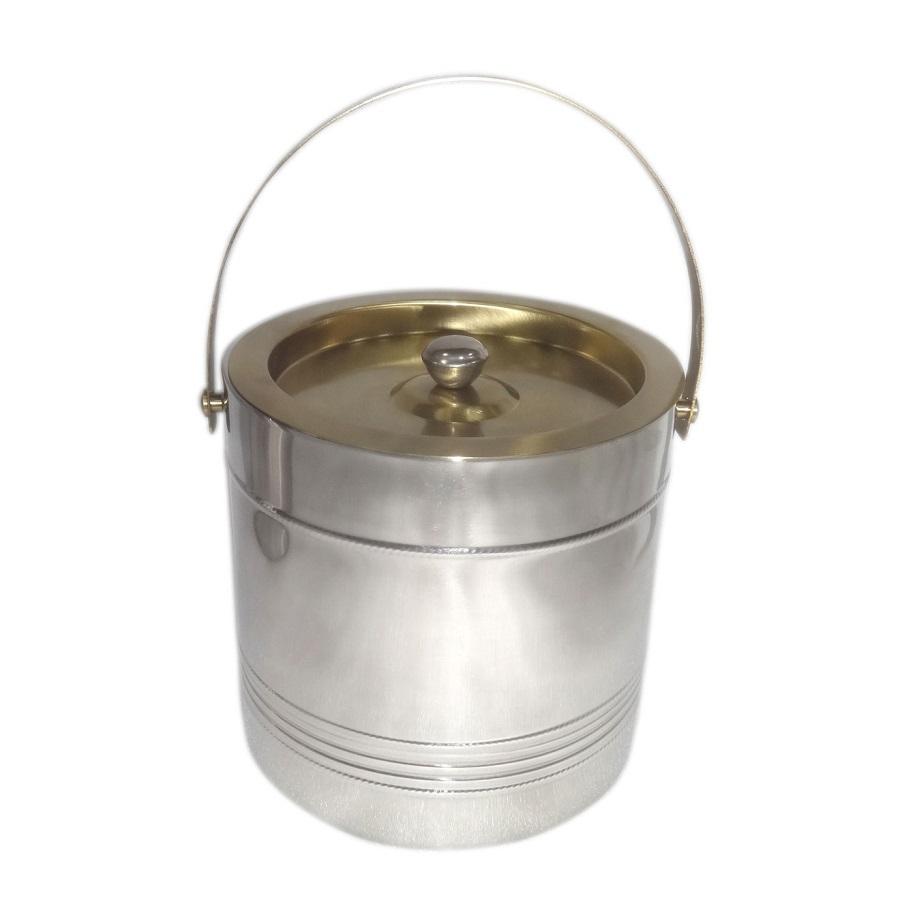 ถังน้ำแข็งสแตนเลสผนังคู่พร้อมฝาทองเหลืองและตอง
