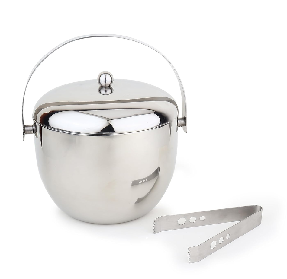 ถังน้ำแข็งสแตนเลสสองชั้นสุดหรูพร้อมที่คีบ | ผิวกระจกเงา | ถังน้ำแข็งสำหรับบาร์โรงแรมสำหรับงานปาร์ตี้