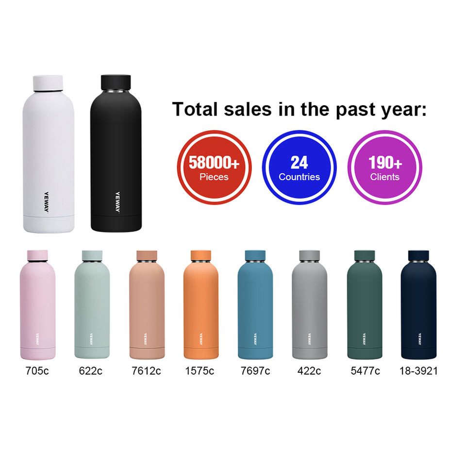 ขวดน้ำเคลือบความจุ750มล. วัสดุ PP สำหรับใช้ในเครื่องล้างจานดื่มโดยตรงปลอดภัย24ชั่วโมงฉนวนกันความร้อนสำหรับกลับไปโรงเรียน