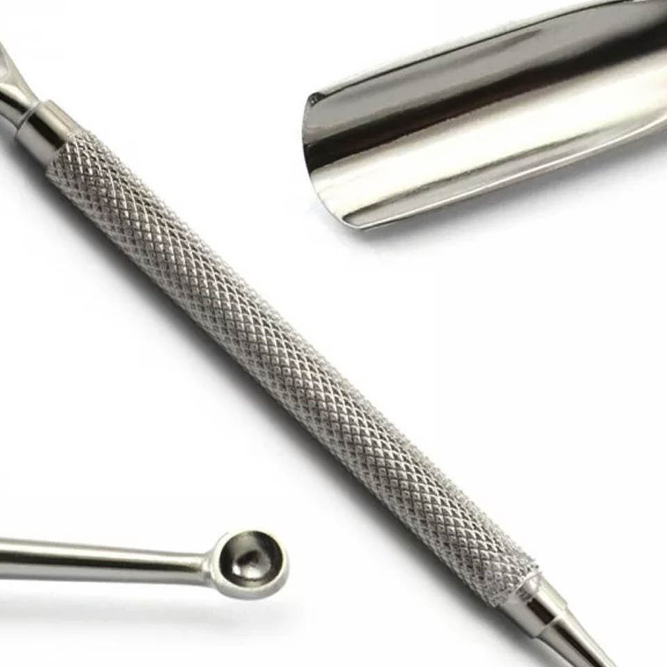 ที่ดันหนังกำพร้าและกำจัดหนังส่วนเกินปลายเล็บแบบสองด้าน ทำจากสแตนเลส ใช้ซ้ำได้ เป็นมิตรกับสิ่งแวดล้อม อุปกรณ์ทำเล็บ