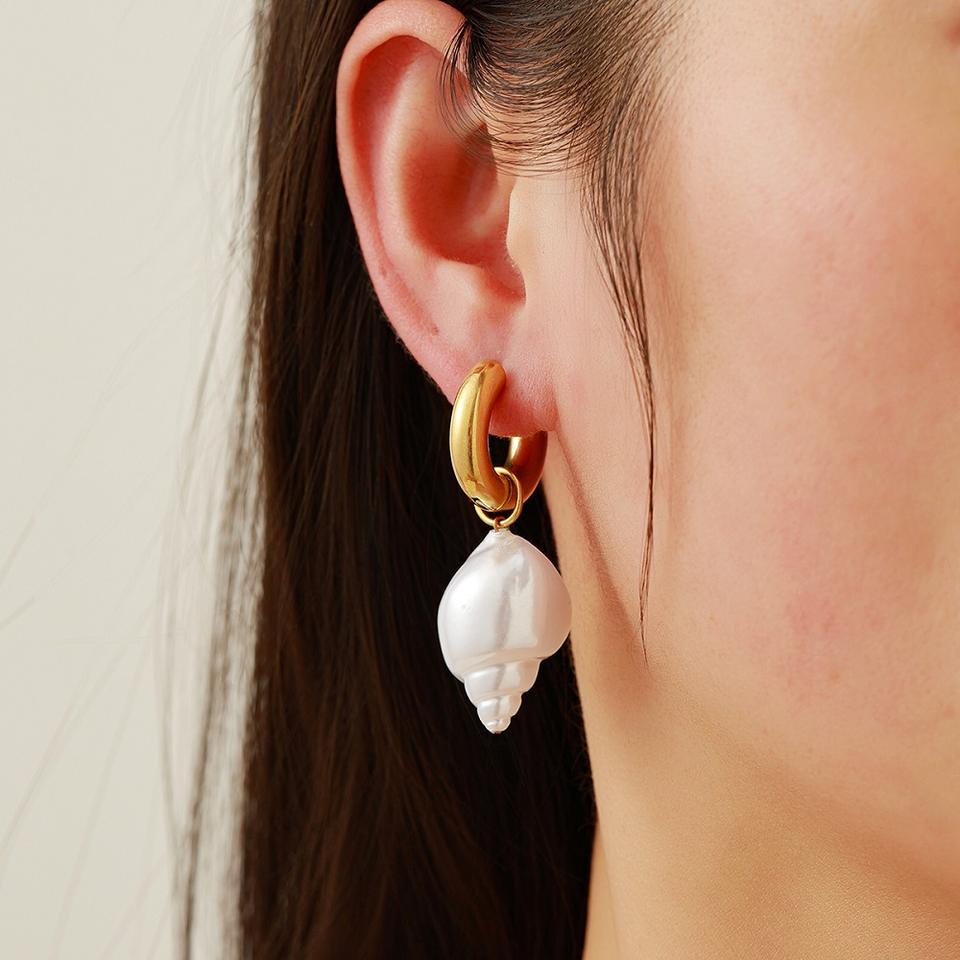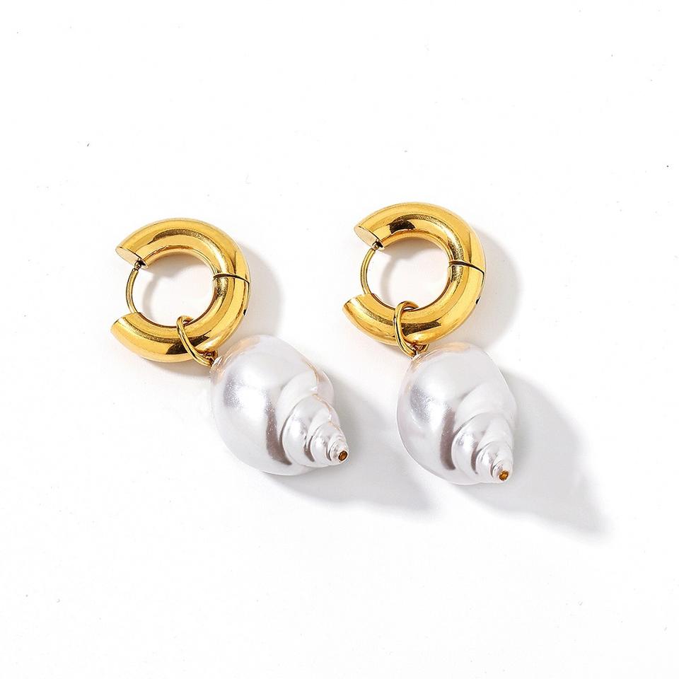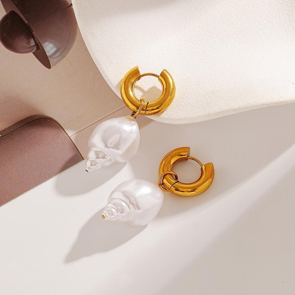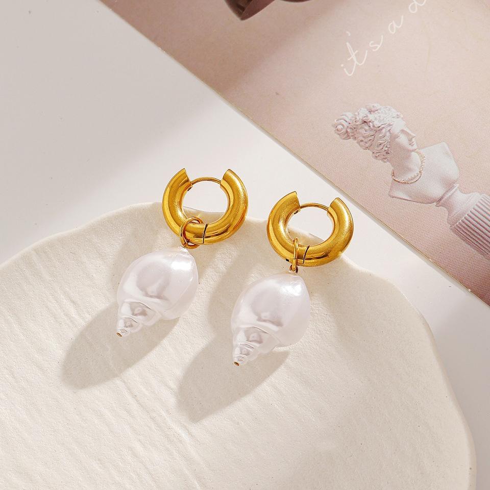 ต่างหูสแตนเลสทรงหยดน้ำ เปลือกหอยมุกเทียม ชุบทอง เครื่องประดับสำหรับงานปาร์ตี้ของผู้หญิง