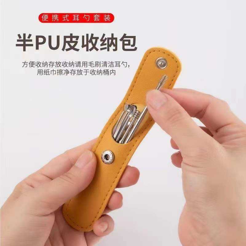 ชุดที่แคะหูสแตนเลส 6 ชิ้น พร้อมซองหนัง อุปกรณ์ทำความสะอาดพื้นฐานสำหรับใช้ในครัวเรือน